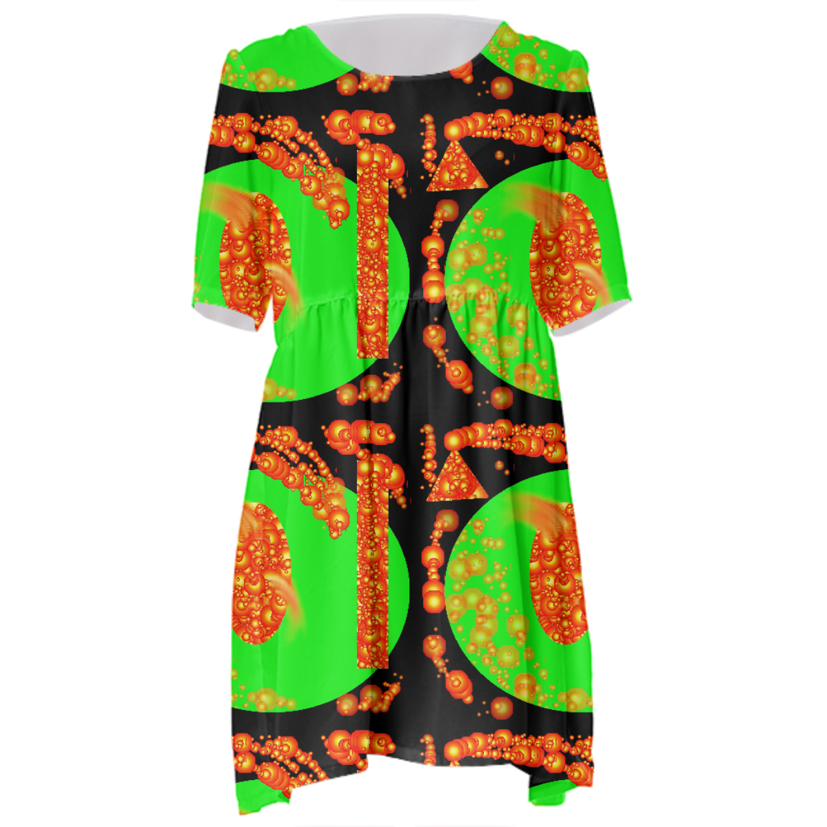 Loose swing fit babydoll dress with shirred waist short sleeves and scoop neckline. The uploaded file will be printed on the entire front and be mirrored on the back. The uploaded file will be printed on the entire front and be mirrored on the back. Because of our cut and sew process some print elements on pockets seams and sleeves might not match up. For best results please upload a PNG or JPG with RGB color profile and dimensions of at least 35 inches width by 40 inches length. DPI can be as low as 72. Since every piece is custom made, it may take 2-4 weeks for delivery. Made in our studio (Shanghai).