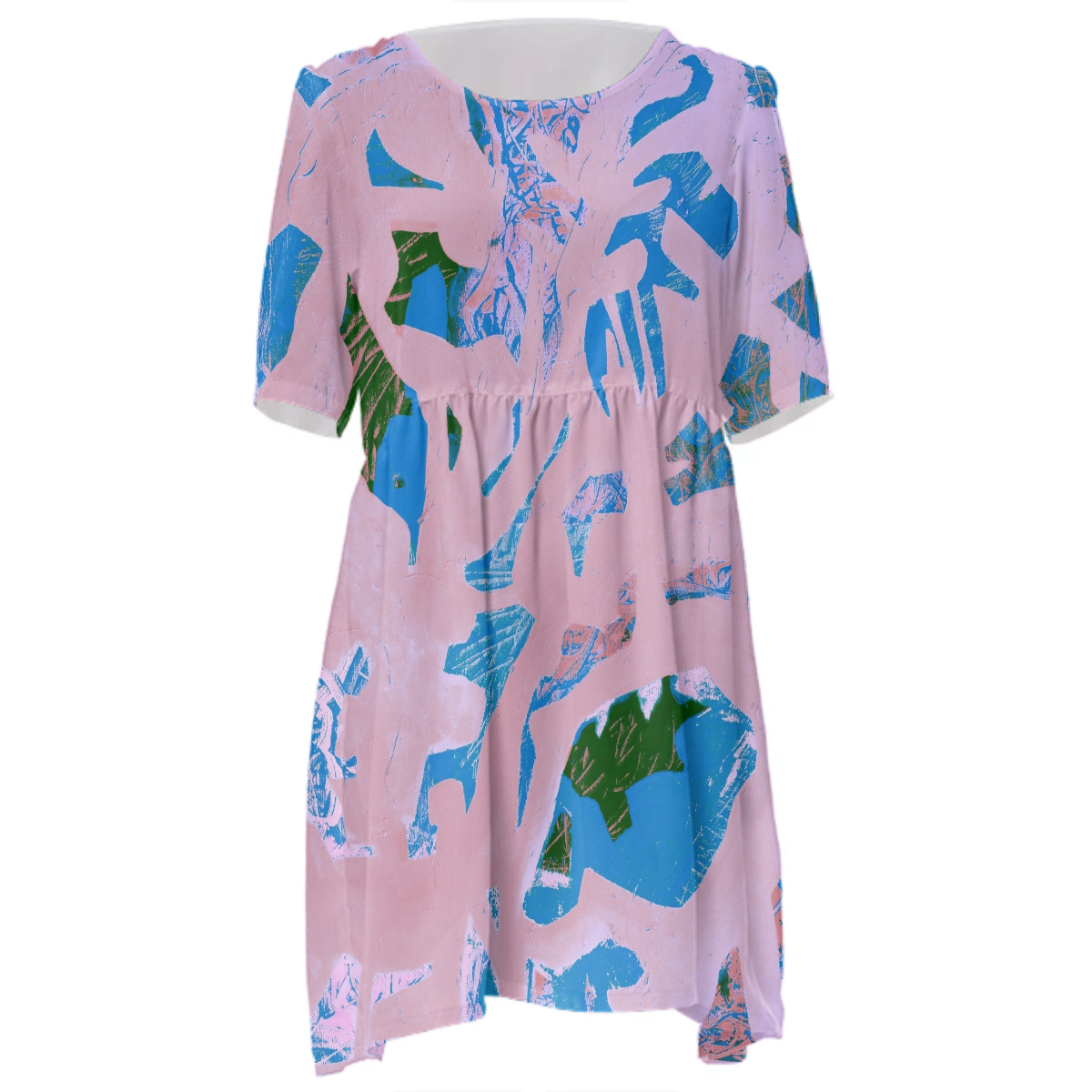 Loose swing fit babydoll dress with shirred waist short sleeves and scoop neckline. The uploaded file will be printed on the entire front and be mirrored on the back. The uploaded file will be printed on the entire front and be mirrored on the back. Because of our cut and sew process some print elements on pockets seams and sleeves might not match up. For best results please upload a PNG or JPG with RGB color profile and dimensions of at least 35 inches width by 40 inches length. DPI can be as low as 72. Since every piece is custom made, it may take 2-4 weeks for delivery. Made in our studio (Shanghai).
