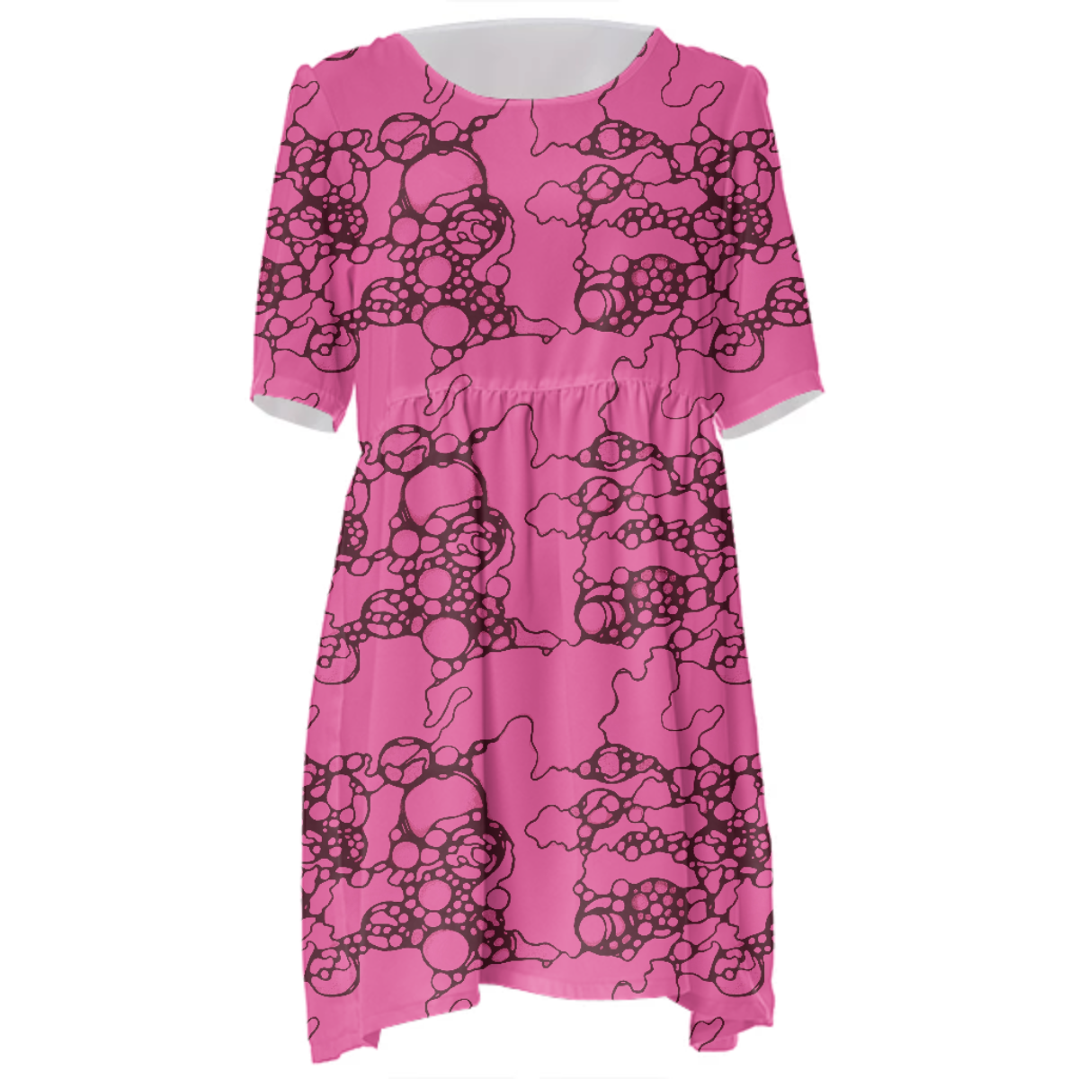 Loose swing fit babydoll dress with shirred waist short sleeves and scoop neckline. The uploaded file will be printed on the entire front and be mirrored on the back. The uploaded file will be printed on the entire front and be mirrored on the back. Because of our cut and sew process some print elements on pockets seams and sleeves might not match up. For best results please upload a PNG or JPG with RGB color profile and dimensions of at least 35 inches width by 40 inches length. DPI can be as low as 72. Since every piece is custom made, it may take 2-4 weeks for delivery. Made in our studio (Shanghai).