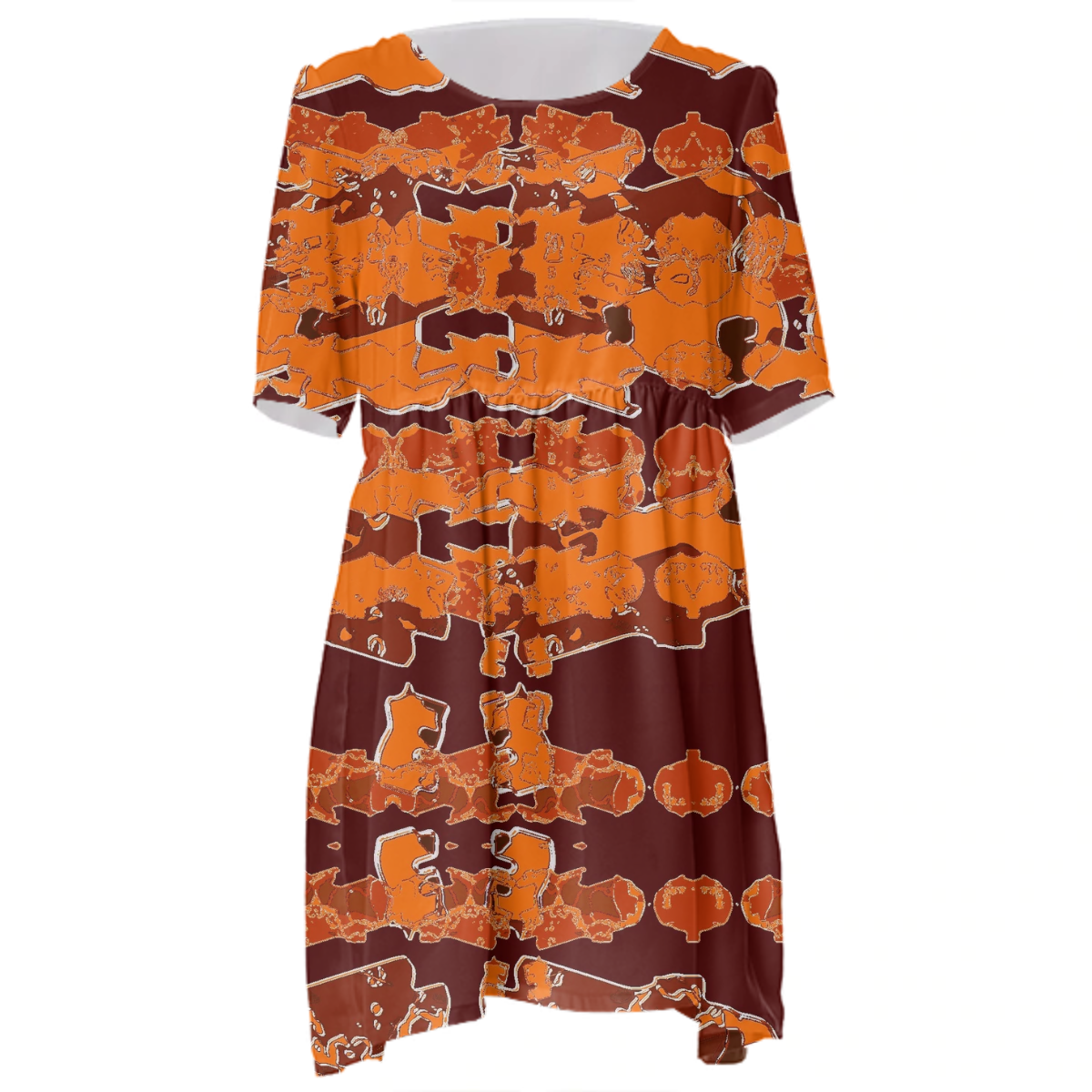 Loose swing fit babydoll dress with shirred waist short sleeves and scoop neckline. The uploaded file will be printed on the entire front and be mirrored on the back. The uploaded file will be printed on the entire front and be mirrored on the back. Because of our cut and sew process some print elements on pockets seams and sleeves might not match up. For best results please upload a PNG or JPG with RGB color profile and dimensions of at least 35 inches width by 40 inches length. DPI can be as low as 72. Since every piece is custom made, it may take 2-4 weeks for delivery. Made in our studio (Shanghai).