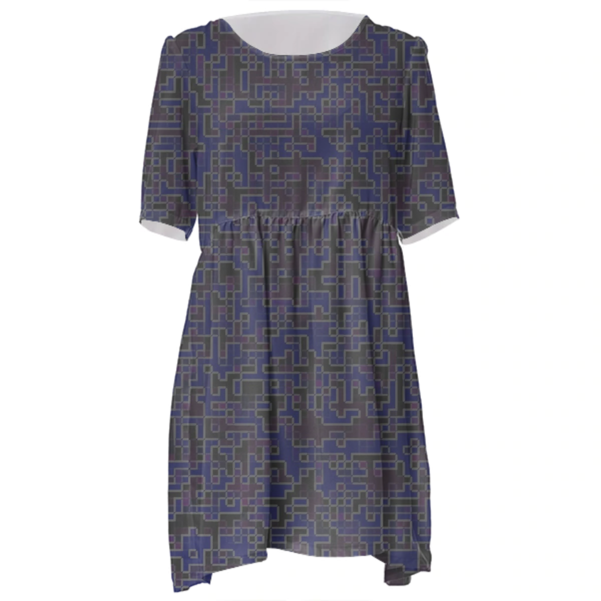 Loose swing fit babydoll dress with shirred waist short sleeves and scoop neckline. The uploaded file will be printed on the entire front and be mirrored on the back. The uploaded file will be printed on the entire front and be mirrored on the back. Because of our cut and sew process some print elements on pockets seams and sleeves might not match up. For best results please upload a PNG or JPG with RGB color profile and dimensions of at least 35 inches width by 40 inches length. DPI can be as low as 72. Since every piece is custom made, it may take 2-4 weeks for delivery. Made in our studio (Shanghai).