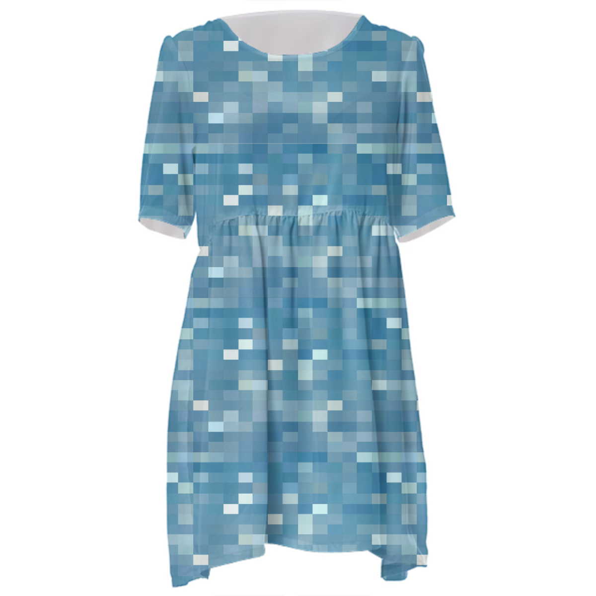 Loose swing fit babydoll dress with shirred waist short sleeves and scoop neckline. The uploaded file will be printed on the entire front and be mirrored on the back. The uploaded file will be printed on the entire front and be mirrored on the back. Because of our cut and sew process some print elements on pockets seams and sleeves might not match up. For best results please upload a PNG or JPG with RGB color profile and dimensions of at least 35 inches width by 40 inches length. DPI can be as low as 72. Since every piece is custom made, it may take 2-4 weeks for delivery. Made in our studio (Shanghai).