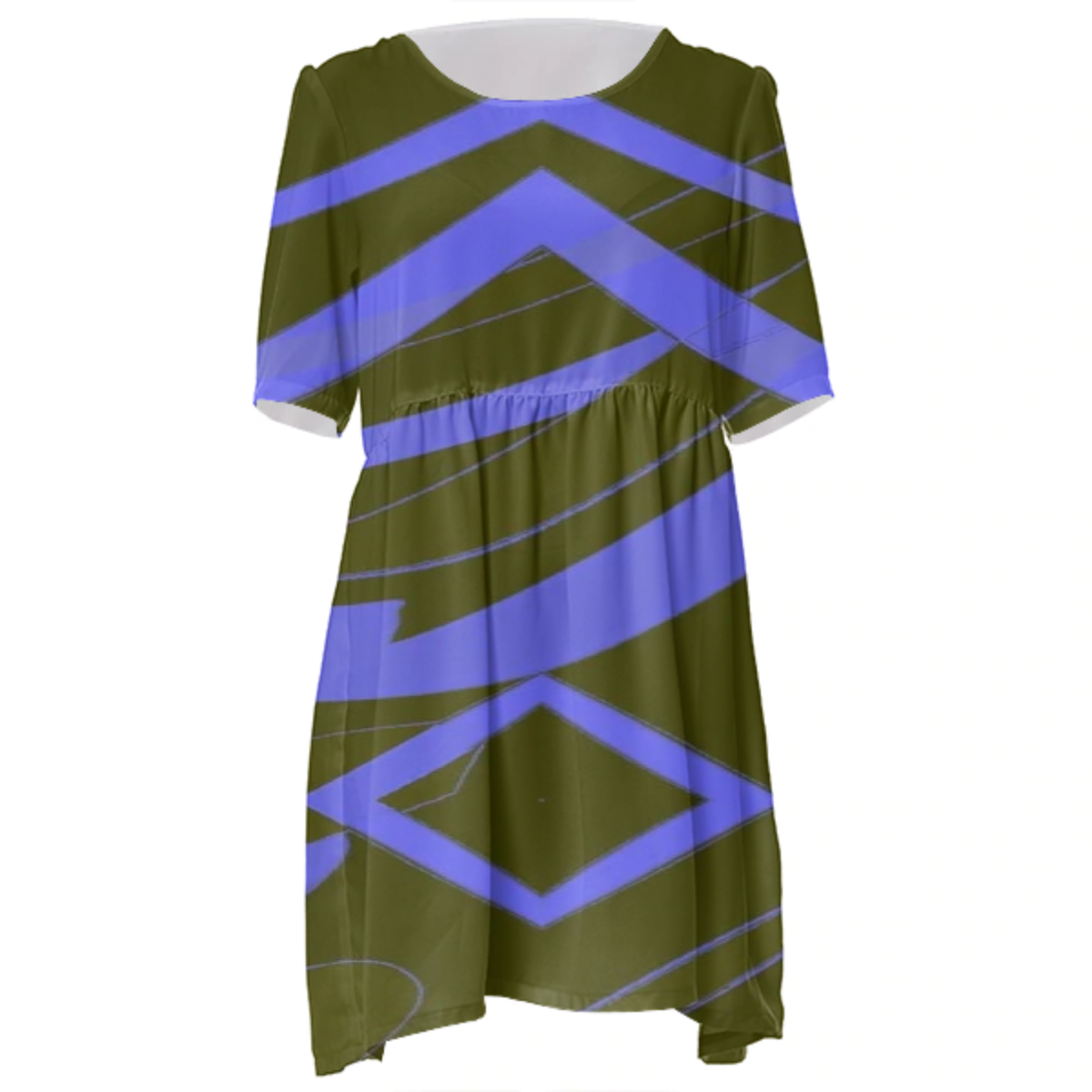 Loose swing fit babydoll dress with shirred waist short sleeves and scoop neckline. The uploaded file will be printed on the entire front and be mirrored on the back. The uploaded file will be printed on the entire front and be mirrored on the back. Because of our cut and sew process some print elements on pockets seams and sleeves might not match up. For best results please upload a PNG or JPG with RGB color profile and dimensions of at least 35 inches width by 40 inches length. DPI can be as low as 72. Since every piece is custom made, it may take 2-4 weeks for delivery. Made in our studio (Shanghai).