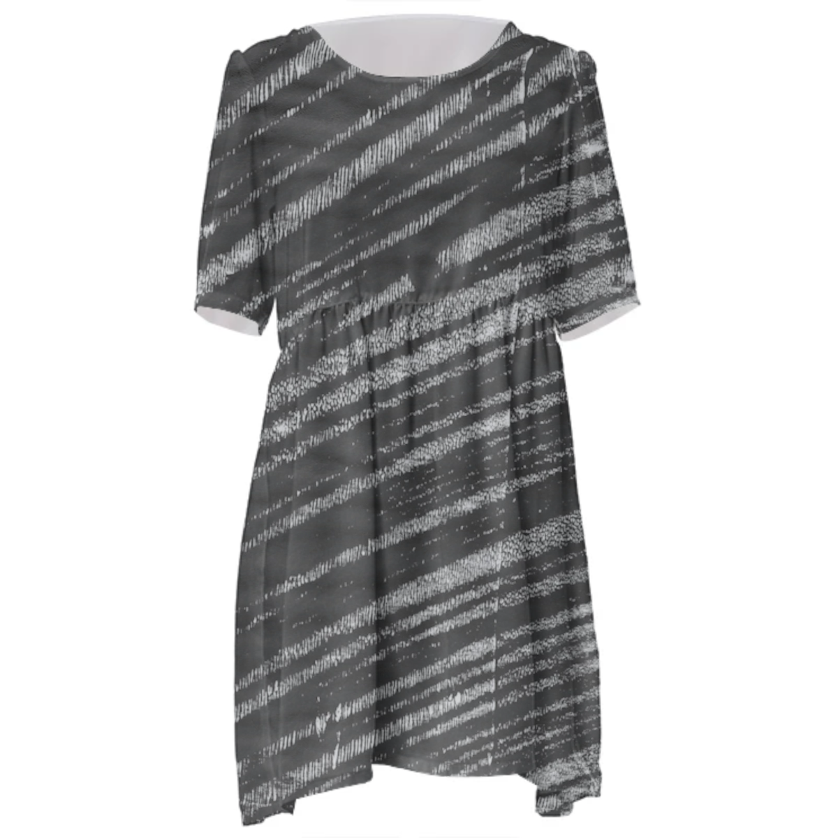 Loose swing fit babydoll dress with shirred waist short sleeves and scoop neckline. The uploaded file will be printed on the entire front and be mirrored on the back. The uploaded file will be printed on the entire front and be mirrored on the back. Because of our cut and sew process some print elements on pockets seams and sleeves might not match up. For best results please upload a PNG or JPG with RGB color profile and dimensions of at least 35 inches width by 40 inches length. DPI can be as low as 72. Since every piece is custom made, it may take 2-4 weeks for delivery. Made in our studio (Shanghai).