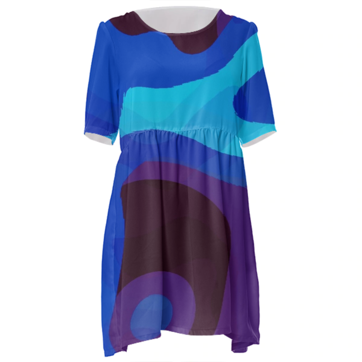 Loose swing fit babydoll dress with shirred waist short sleeves and scoop neckline. The uploaded file will be printed on the entire front and be mirrored on the back. The uploaded file will be printed on the entire front and be mirrored on the back. Because of our cut and sew process some print elements on pockets seams and sleeves might not match up. For best results please upload a PNG or JPG with RGB color profile and dimensions of at least 35 inches width by 40 inches length. DPI can be as low as 72. Since every piece is custom made, it may take 2-4 weeks for delivery. Made in our studio (Shanghai).