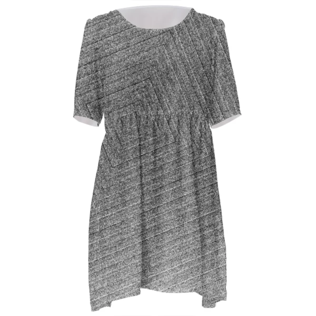 Loose swing fit babydoll dress with shirred waist short sleeves and scoop neckline. The uploaded file will be printed on the entire front and be mirrored on the back. The uploaded file will be printed on the entire front and be mirrored on the back. Because of our cut and sew process some print elements on pockets seams and sleeves might not match up. For best results please upload a PNG or JPG with RGB color profile and dimensions of at least 35 inches width by 40 inches length. DPI can be as low as 72. Since every piece is custom made, it may take 2-4 weeks for delivery. Made in our studio (Shanghai).