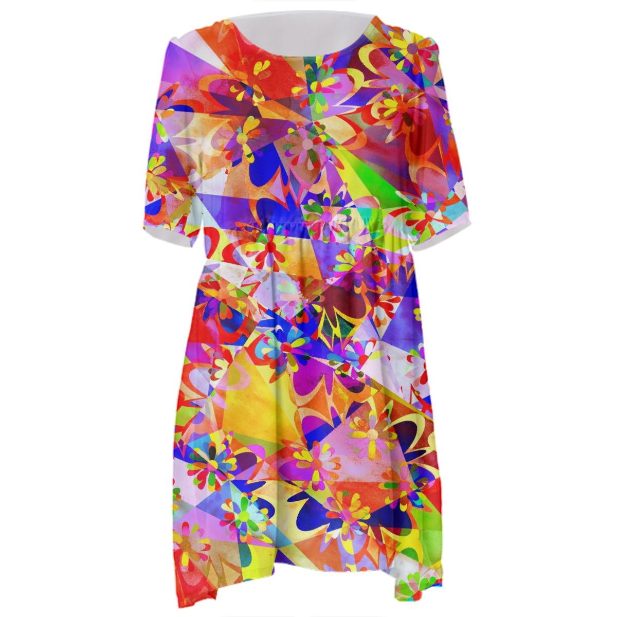 Loose swing fit babydoll dress with shirred waist short sleeves and scoop neckline. The uploaded file will be printed on the entire front and be mirrored on the back. The uploaded file will be printed on the entire front and be mirrored on the back. Because of our cut and sew process some print elements on pockets seams and sleeves might not match up. For best results please upload a PNG or JPG with RGB color profile and dimensions of at least 35 inches width by 40 inches length. DPI can be as low as 72. Since every piece is custom made, it may take 2-4 weeks for delivery. Made in our studio (Shanghai).
