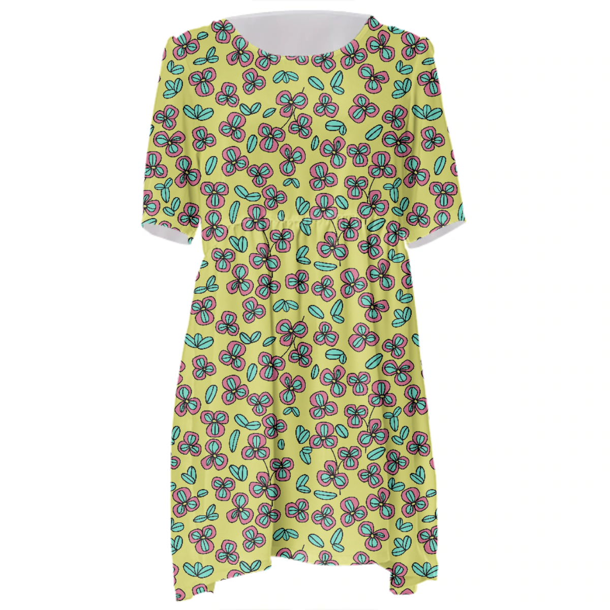 Loose swing fit babydoll dress with shirred waist short sleeves and scoop neckline. The uploaded file will be printed on the entire front and be mirrored on the back. The uploaded file will be printed on the entire front and be mirrored on the back. Because of our cut and sew process some print elements on pockets seams and sleeves might not match up. For best results please upload a PNG or JPG with RGB color profile and dimensions of at least 35 inches width by 40 inches length. DPI can be as low as 72. Since every piece is custom made, it may take 2-4 weeks for delivery. Made in our studio (Shanghai).
