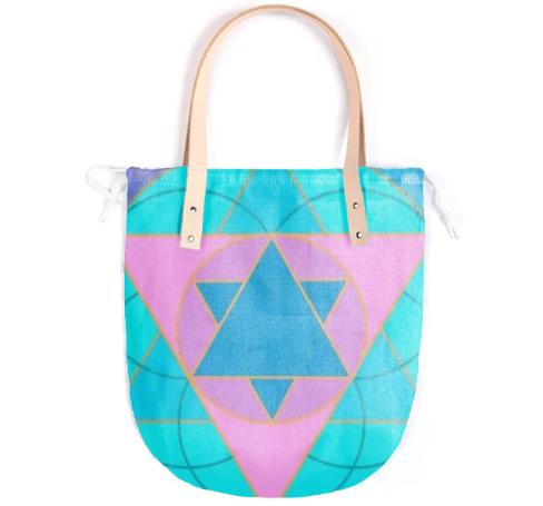 The Summer tote features a round bottom shape small inside patch pocket and tan or black leather handles.