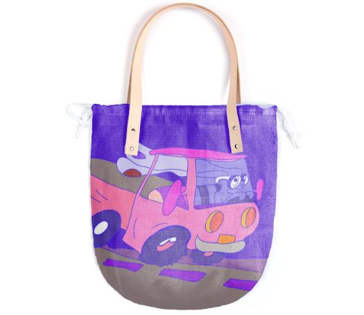 The Summer tote features a round bottom shape small inside patch pocket and tan or black leather handles.