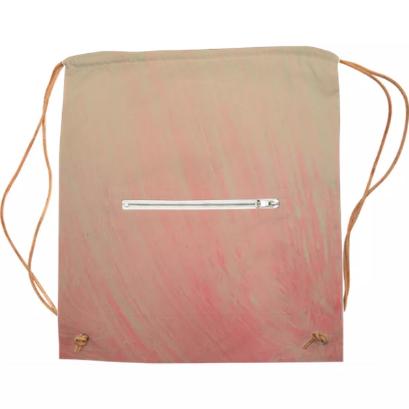 Drawstring sports bag with outside zip up pocket and black or white drawstring straps.