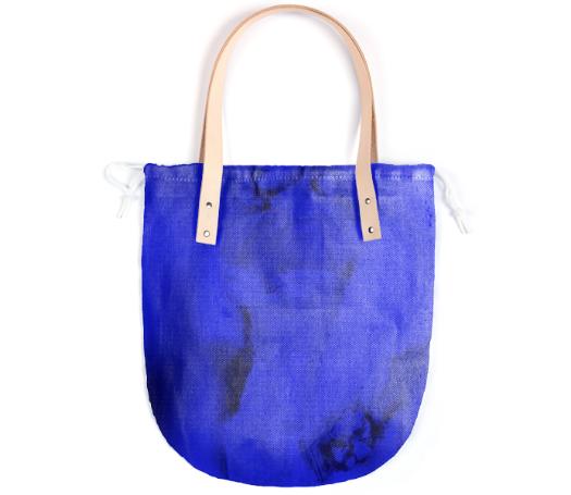 The Summer tote features a round bottom shape small inside patch pocket and tan or black leather handles.