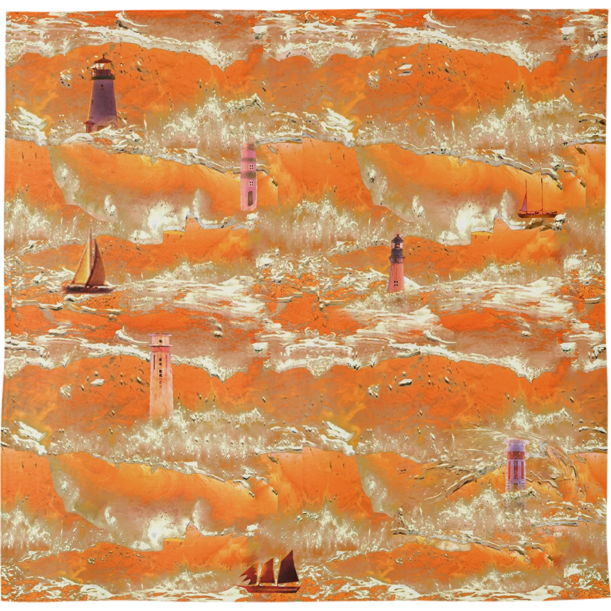 sea,sunrise, sunset, waves, foam, lighthouses, ships, sailboats, orange, white,