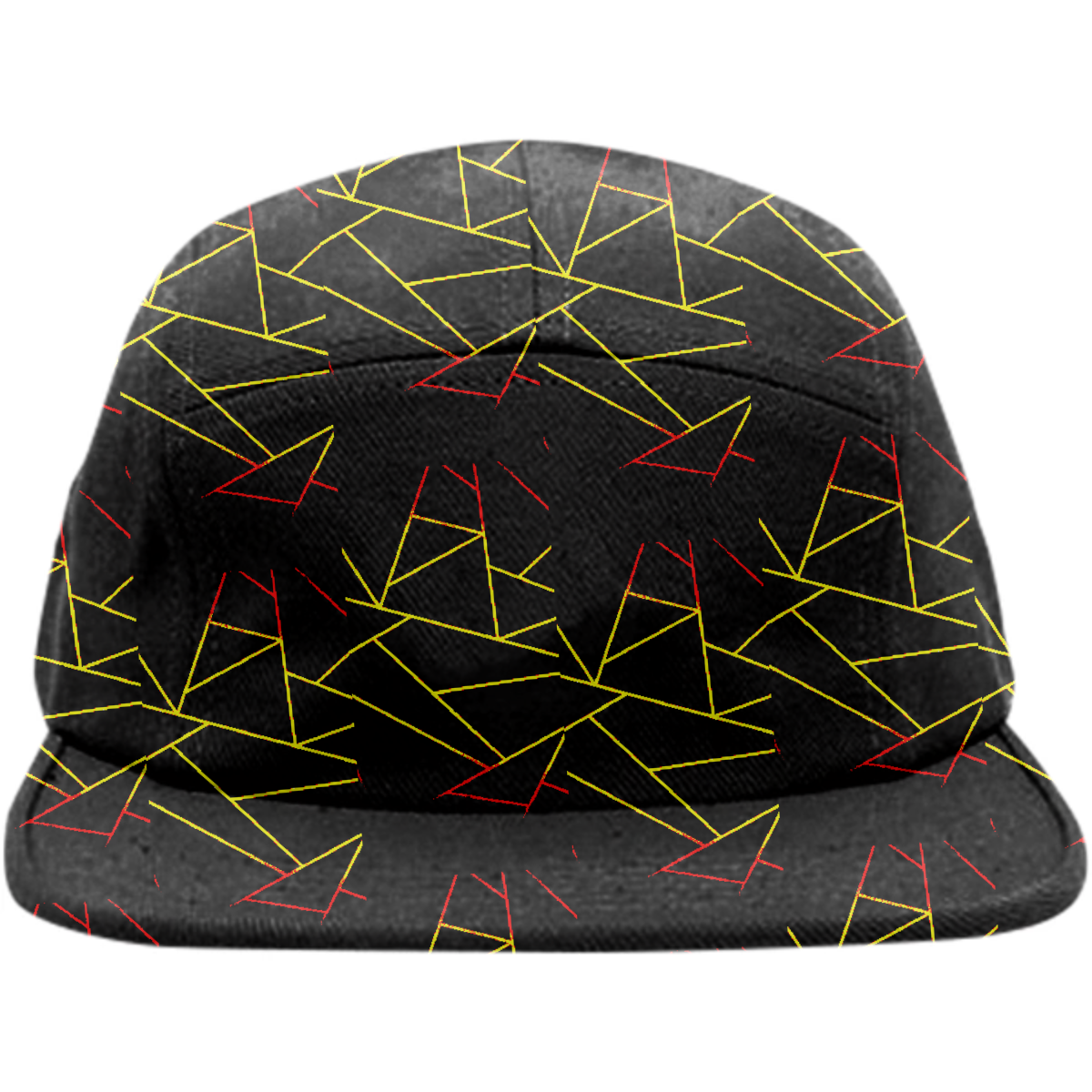 Five panel baseball hat with adjustable nylon strap for sizing.