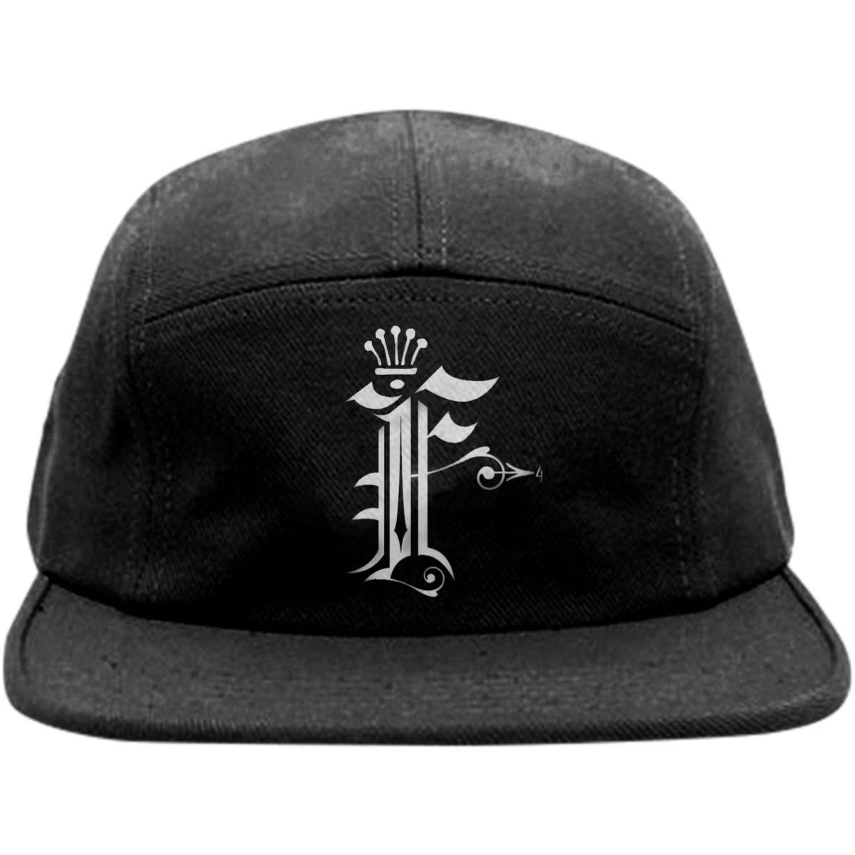 Five panel baseball hat with adjustable nylon strap for sizing.