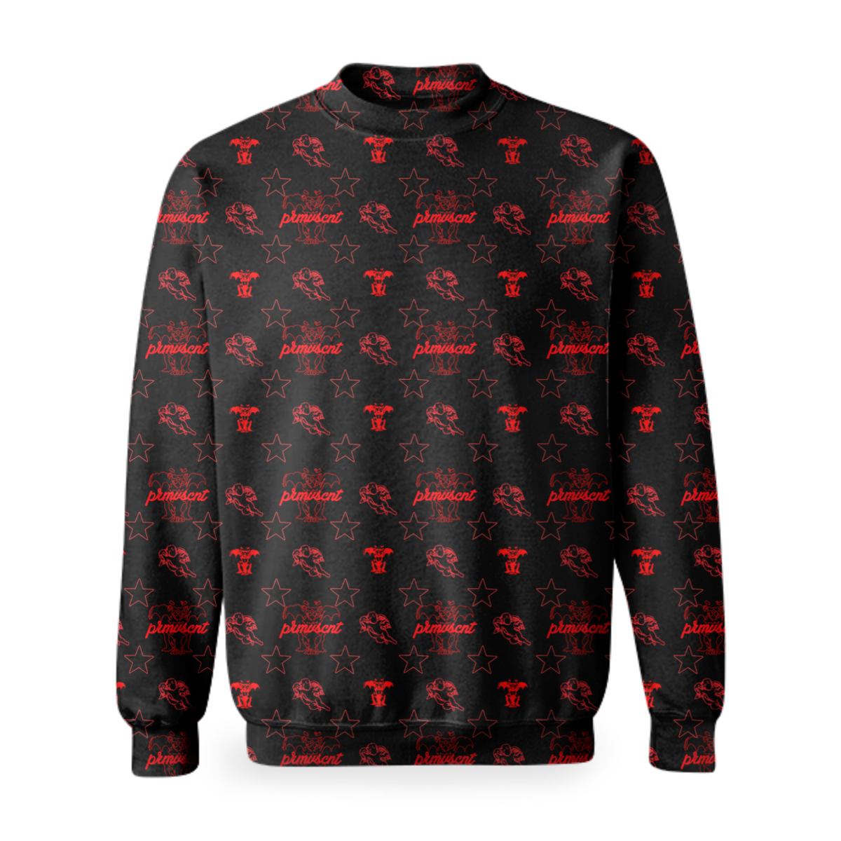 Basic crew neck sweatshirt with made with soft recycled polyester sweatshirt fabric. Features printed neck arm and bottom cuffs.