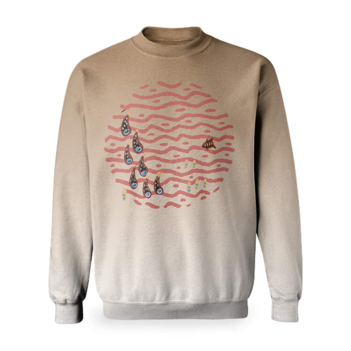 Basic crew neck sweatshirt with made with soft recycled polyester sweatshirt fabric. Features printed neck arm and bottom cuffs.