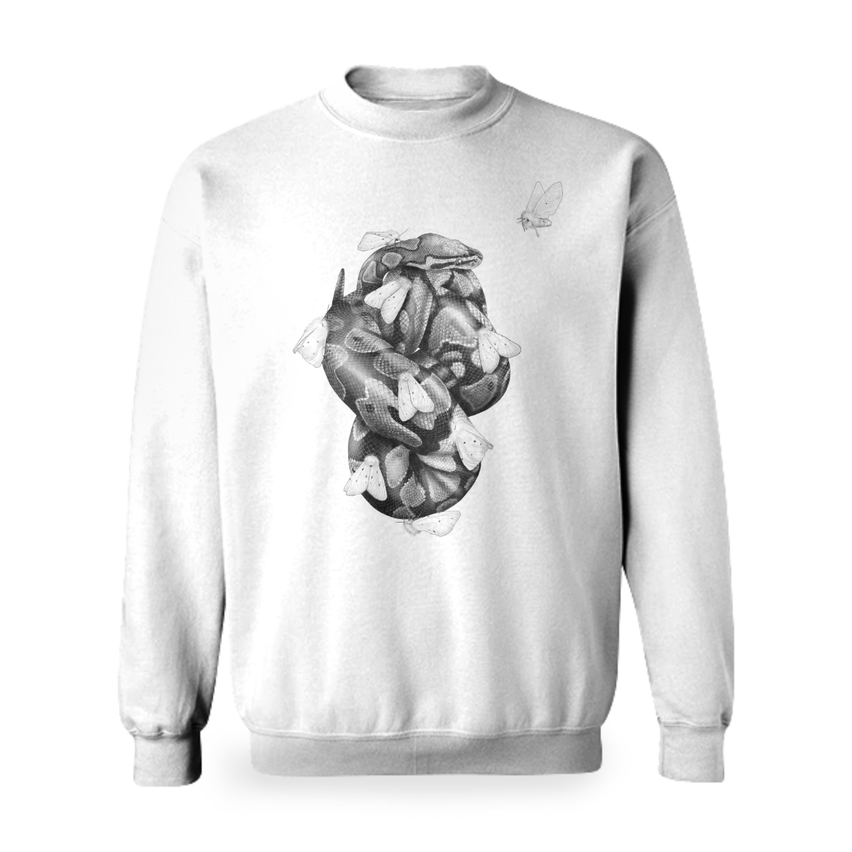 Basic crew neck sweatshirt with made with soft recycled polyester sweatshirt fabric. Features printed neck arm and bottom cuffs.