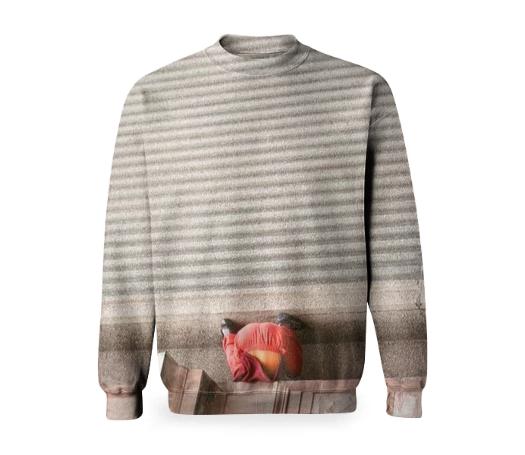Basic crew neck sweatshirt with made with soft recycled polyester sweatshirt fabric. Features printed neck arm and bottom cuffs.