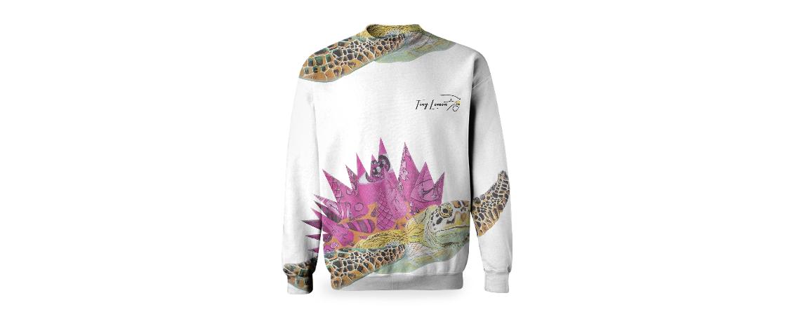 Basic crew neck sweatshirt with made with soft recycled polyester sweatshirt fabric. Features printed neck arm and bottom cuffs.