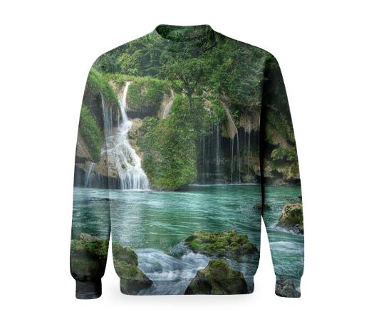 Basic crew neck sweatshirt with made with soft recycled polyester sweatshirt fabric. Features printed neck arm and bottom cuffs.