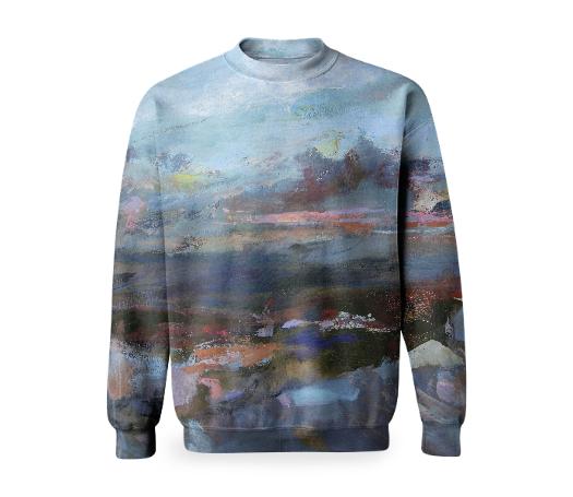 Basic crew neck sweatshirt with made with soft recycled polyester sweatshirt fabric. Features printed neck arm and bottom cuffs.