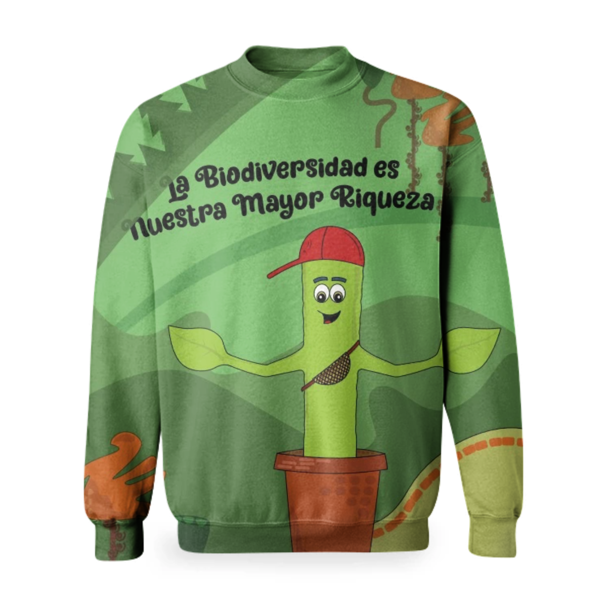 Basic crew neck sweatshirt with made with soft recycled polyester sweatshirt fabric. Features printed neck arm and bottom cuffs.