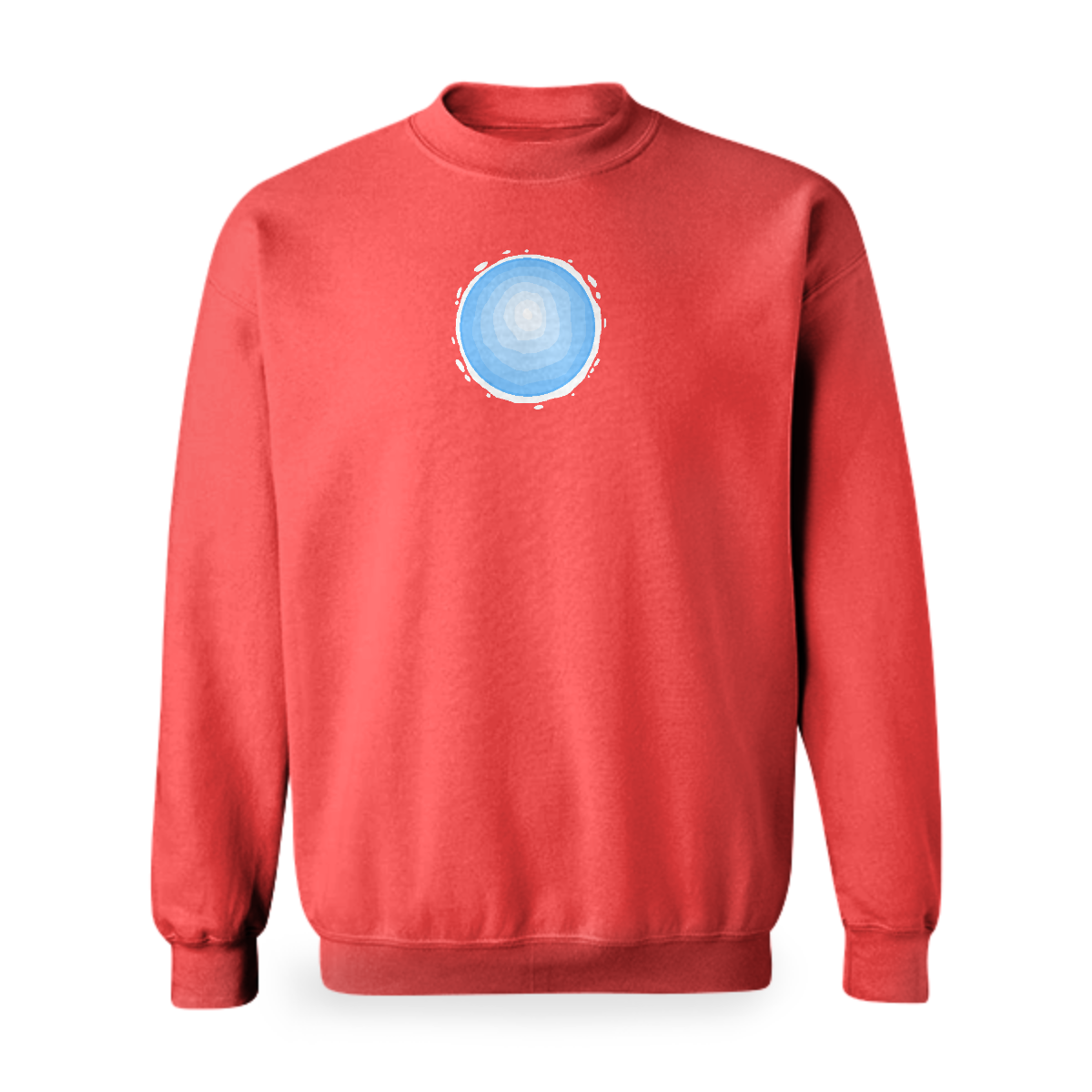 Basic crew neck sweatshirt with made with soft recycled polyester sweatshirt fabric. Features printed neck arm and bottom cuffs.
