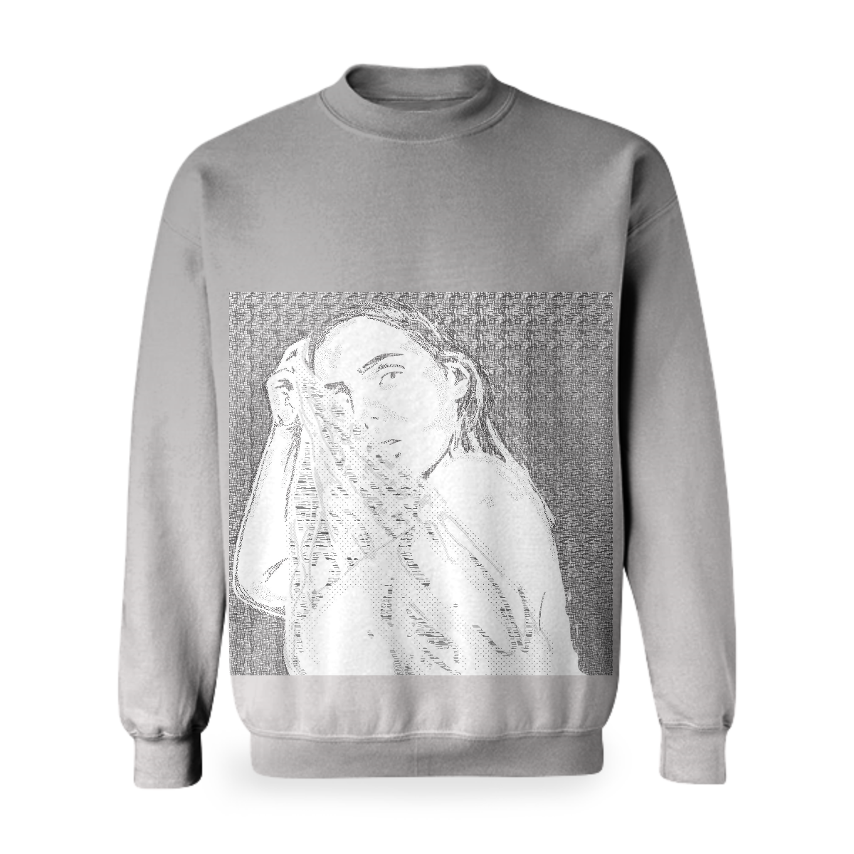 Basic crew neck sweatshirt with made with soft recycled polyester sweatshirt fabric. Features printed neck arm and bottom cuffs.