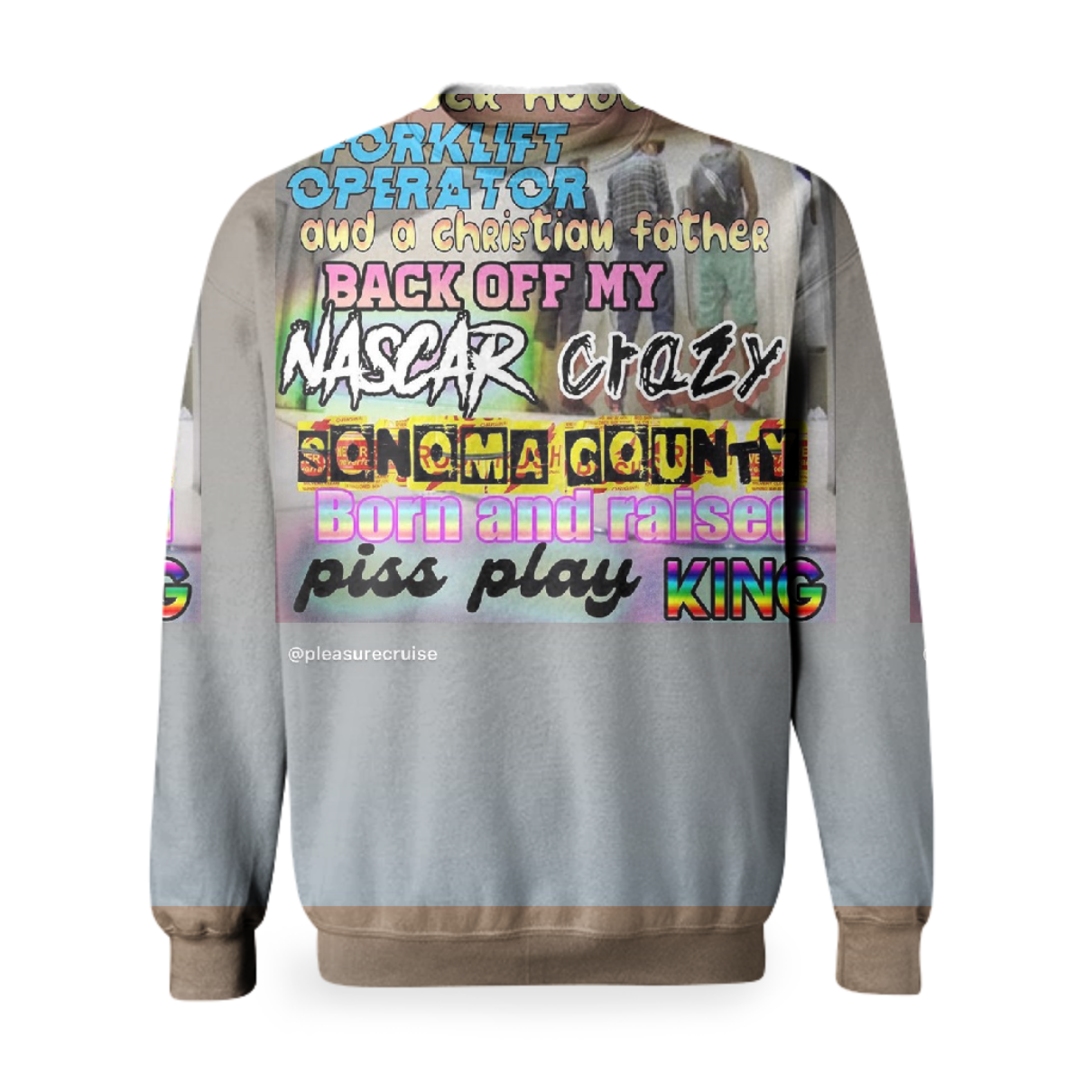 Basic crew neck sweatshirt with made with soft recycled polyester sweatshirt fabric. Features printed neck arm and bottom cuffs.