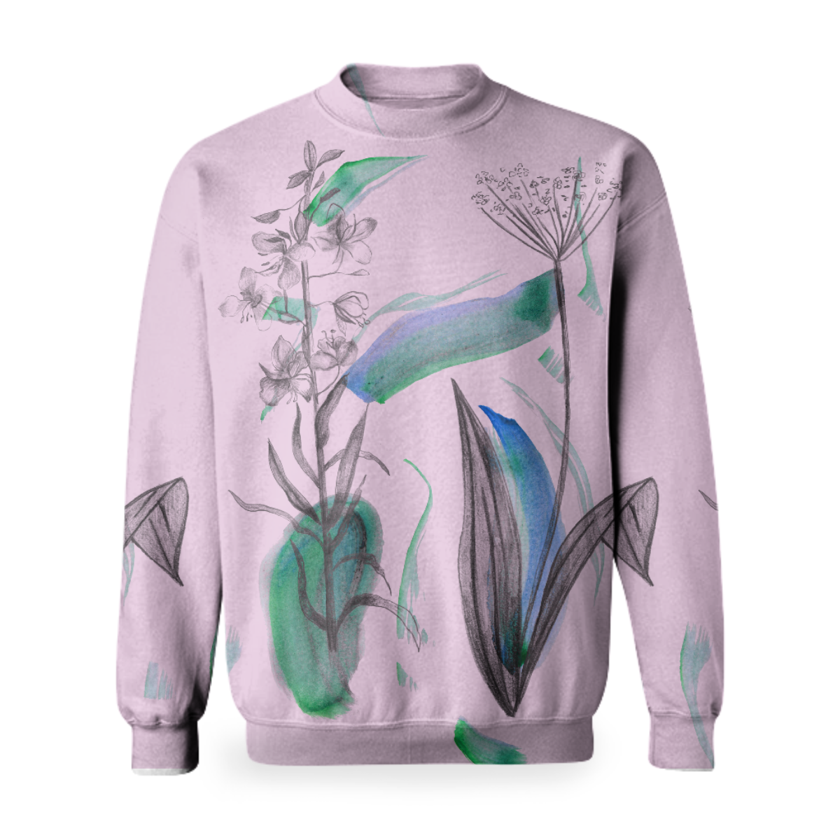 Basic crew neck sweatshirt with made with soft recycled polyester sweatshirt fabric. Features printed neck arm and bottom cuffs.