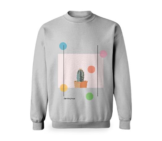 Basic crew neck sweatshirt with made with soft recycled polyester sweatshirt fabric. Features printed neck arm and bottom cuffs.