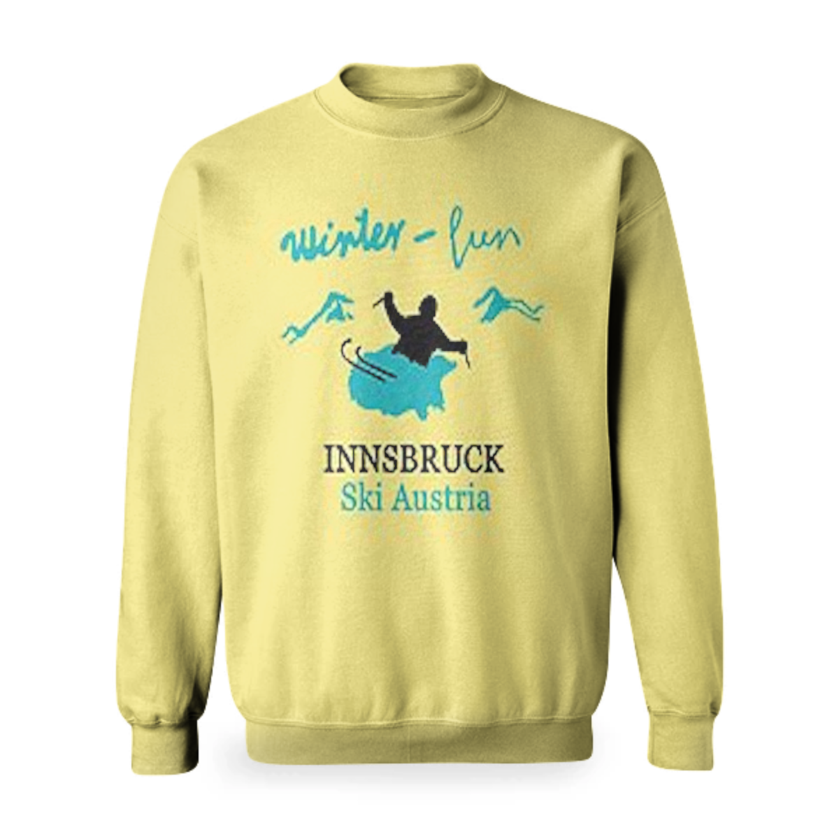 Basic crew neck sweatshirt with made with soft recycled polyester sweatshirt fabric. Features printed neck arm and bottom cuffs.