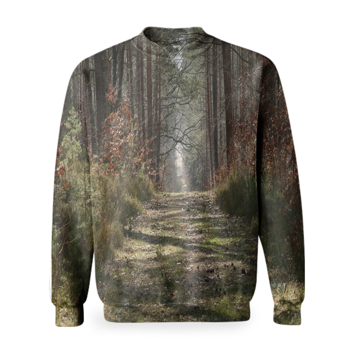 Basic crew neck sweatshirt with made with soft recycled polyester sweatshirt fabric. Features printed neck arm and bottom cuffs.