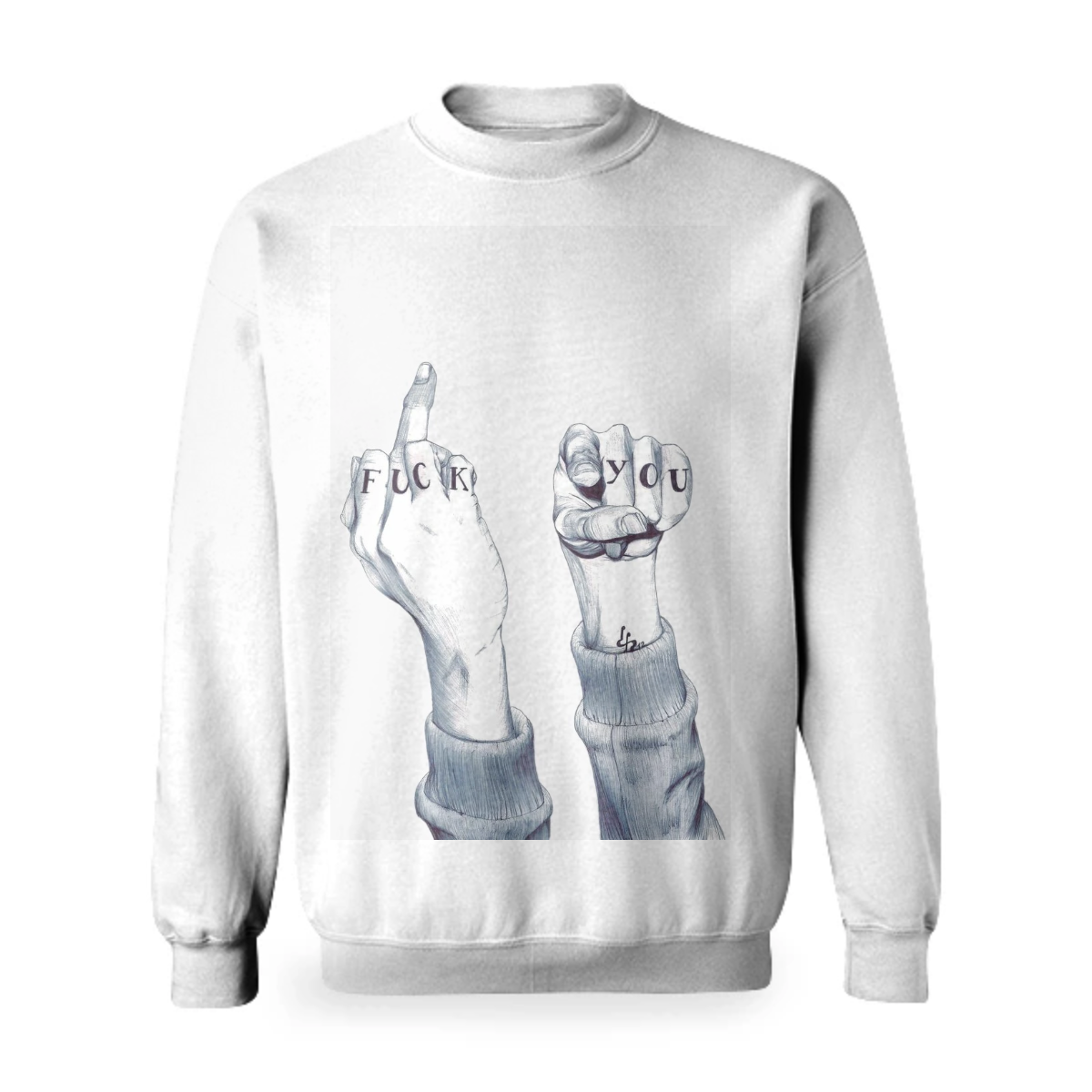 Basic crew neck sweatshirt with made with soft recycled polyester sweatshirt fabric. Features printed neck arm and bottom cuffs.