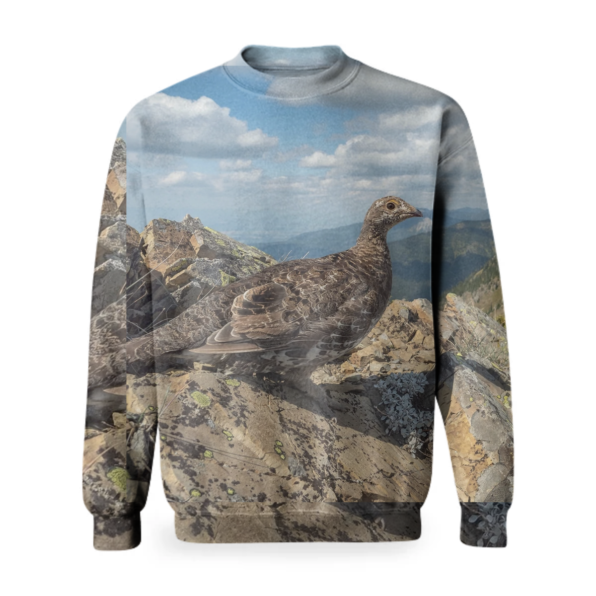 Basic crew neck sweatshirt with made with soft recycled polyester sweatshirt fabric. Features printed neck arm and bottom cuffs.
