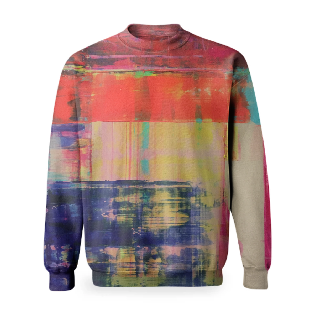 Basic crew neck sweatshirt with made with soft recycled polyester sweatshirt fabric. Features printed neck arm and bottom cuffs.