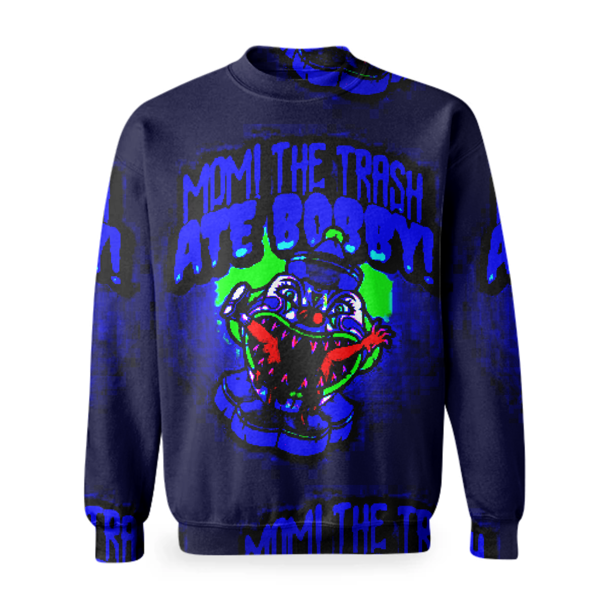 Basic crew neck sweatshirt with made with soft recycled polyester sweatshirt fabric. Features printed neck arm and bottom cuffs.