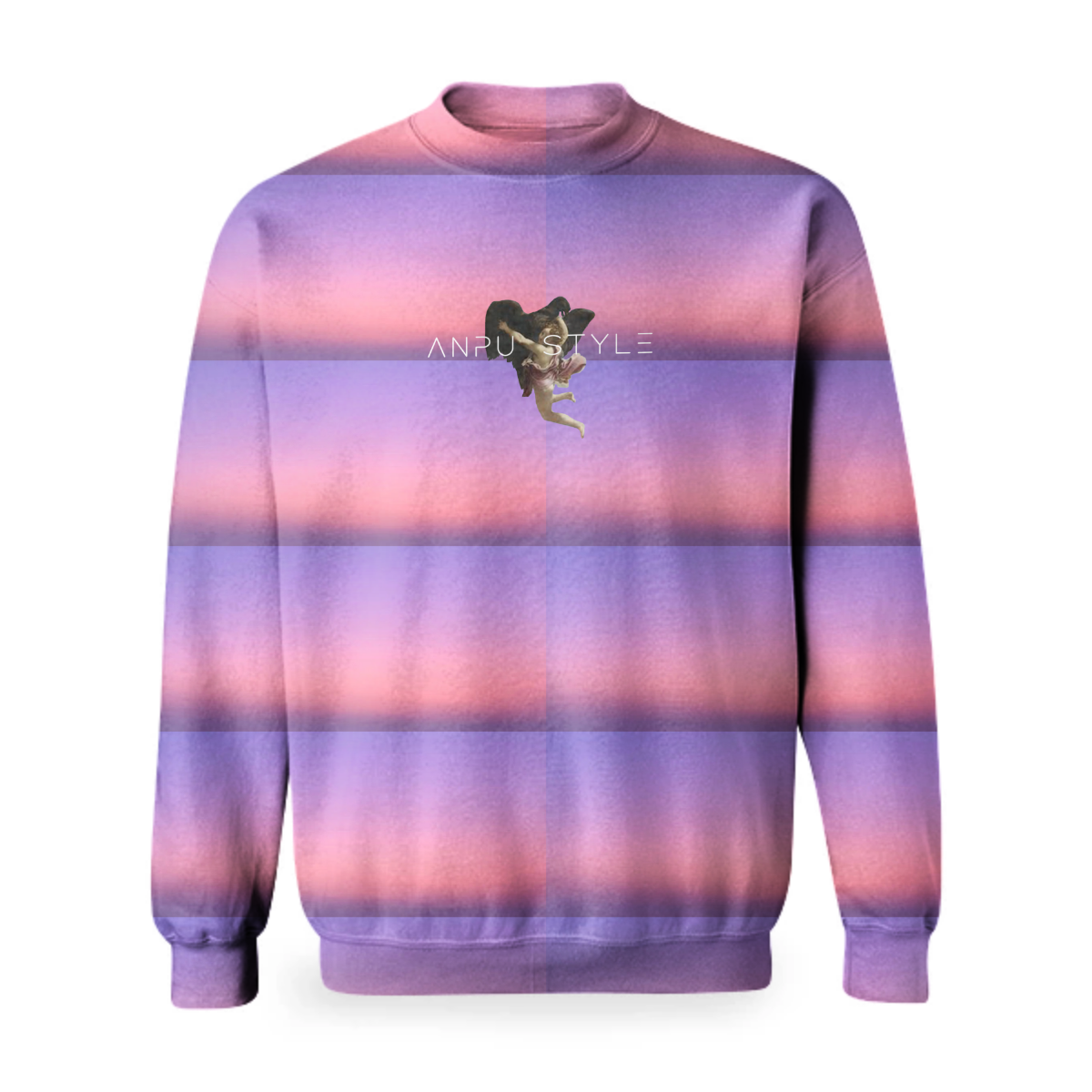 Basic crew neck sweatshirt with made with soft recycled polyester sweatshirt fabric. Features printed neck arm and bottom cuffs.