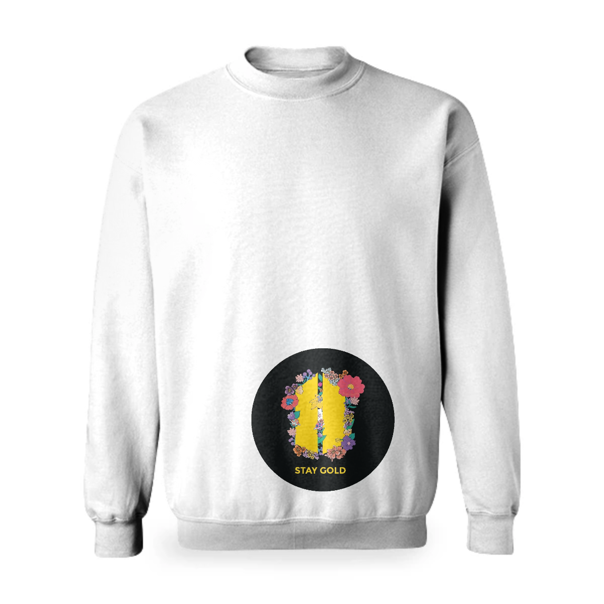 Basic crew neck sweatshirt with made with soft recycled polyester sweatshirt fabric. Features printed neck arm and bottom cuffs.