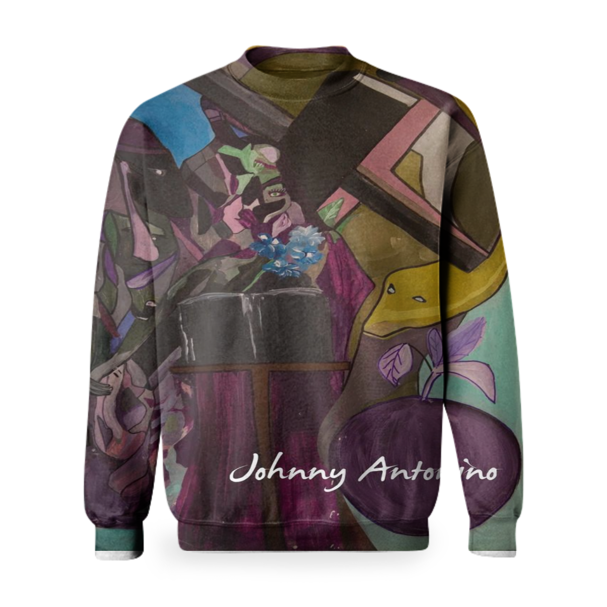 Basic crew neck sweatshirt with made with soft recycled polyester sweatshirt fabric. Features printed neck arm and bottom cuffs.