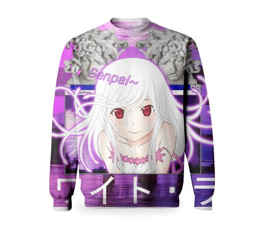 Basic crew neck sweatshirt with made with soft recycled polyester sweatshirt fabric. Features printed neck arm and bottom cuffs.