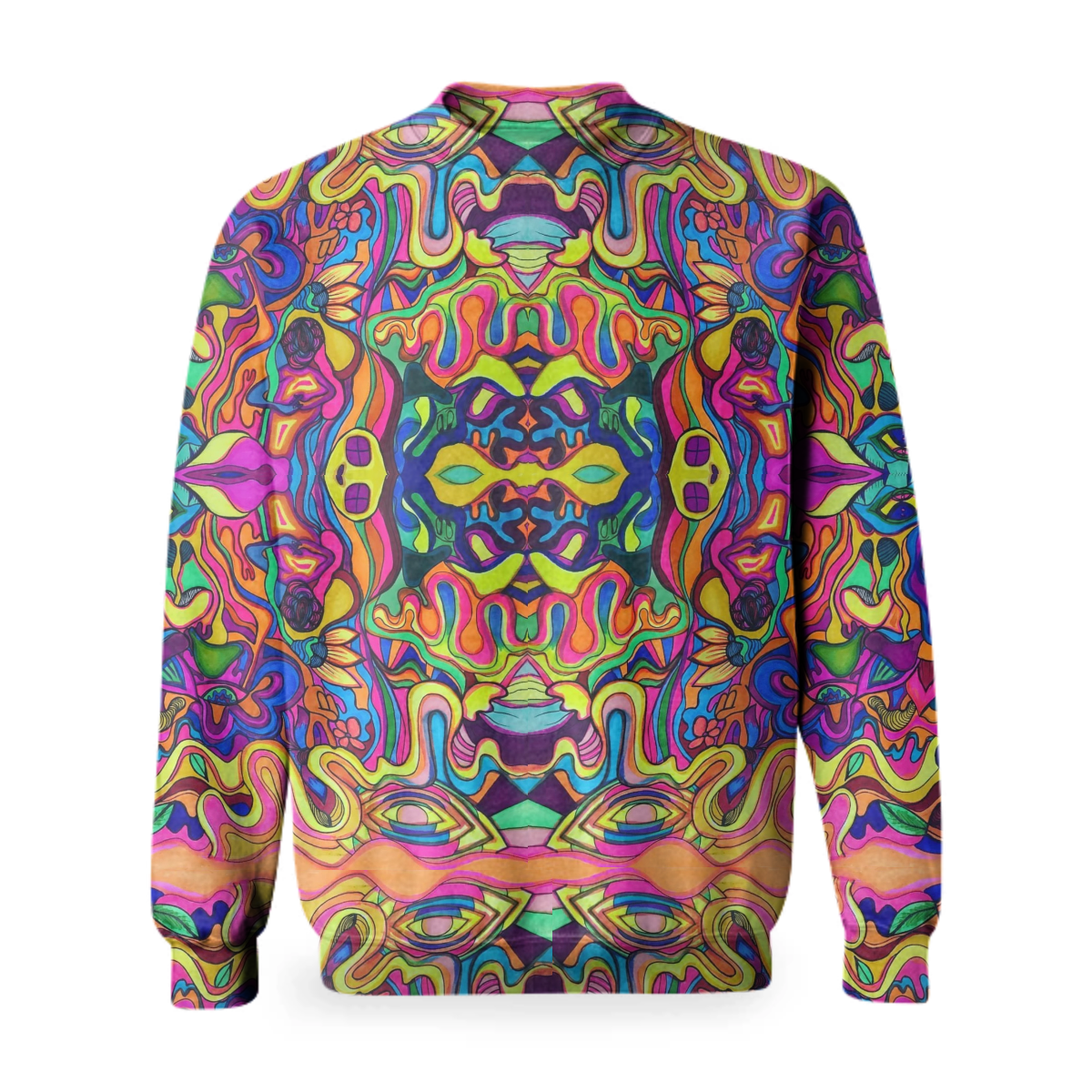 The uploaded file will be printed on the entire front and be mirrored on the back. Because of our cut and sew process some print elements on pockets seams and sleeves might not match up. For best results please upload a PNG or JPG with RGB color profile and dimensions of at least 35 inches width by 20 inches length. DPI can be as low as 72.