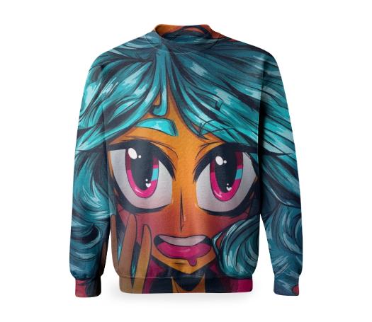 Basic crew neck sweatshirt with made with soft recycled polyester sweatshirt fabric. Features printed neck arm and bottom cuffs.