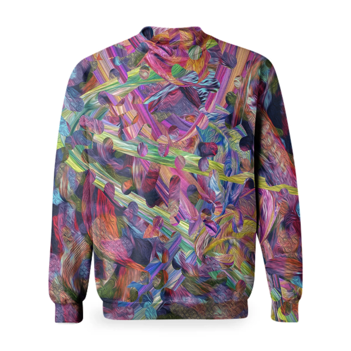 Basic crew neck sweatshirt with made with soft recycled polyester sweatshirt fabric. Features printed neck arm and bottom cuffs.