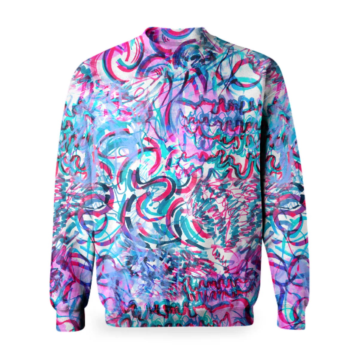 Basic crew neck sweatshirt with made with soft recycled polyester sweatshirt fabric. Features printed neck arm and bottom cuffs.