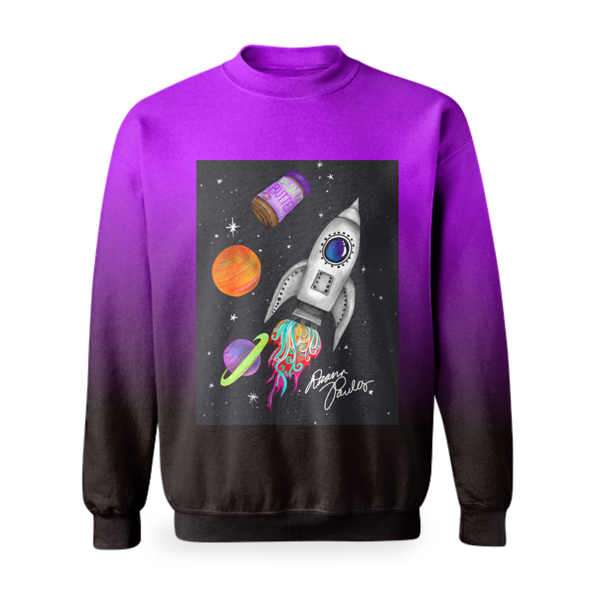 Basic crew neck sweatshirt with made with soft recycled polyester sweatshirt fabric. Features printed neck arm and bottom cuffs.
