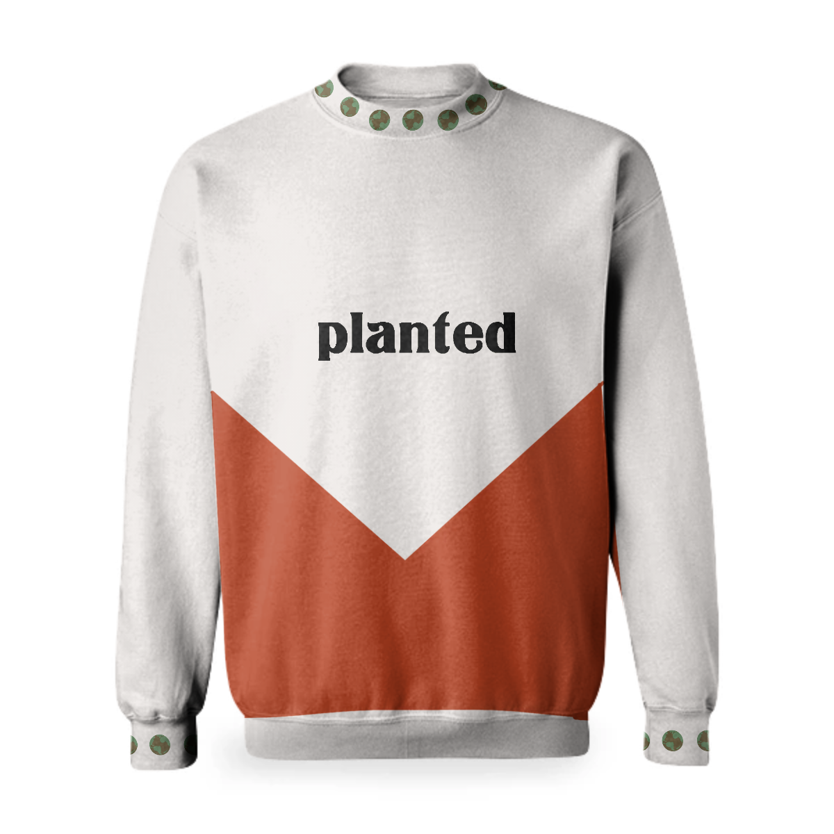 Basic crew neck sweatshirt with made with soft recycled polyester sweatshirt fabric. Features printed neck arm and bottom cuffs.