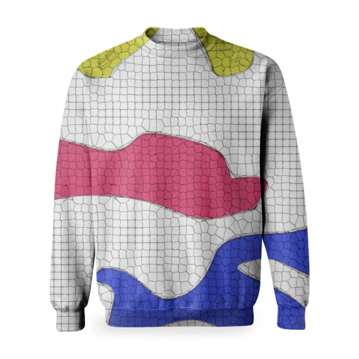 Basic crew neck sweatshirt with made with soft recycled polyester sweatshirt fabric. Features printed neck arm and bottom cuffs.