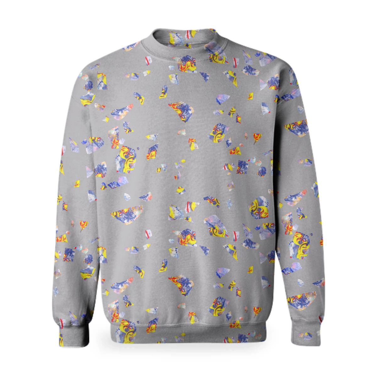 Basic crew neck sweatshirt with made with soft recycled polyester sweatshirt fabric. Features printed neck arm and bottom cuffs.